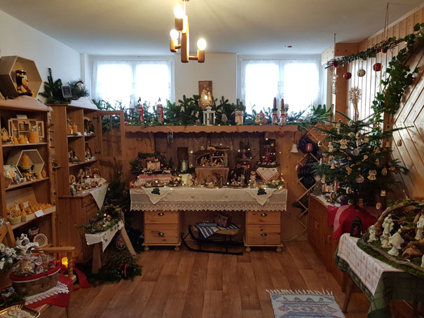 Klein aber fein: In unserem Adventmarkt finden sich verschiedenste Dinge: handgefertigte Krippen, liebevoll gestaltete Gestecke oder verschiedener Christbaumschmuck.