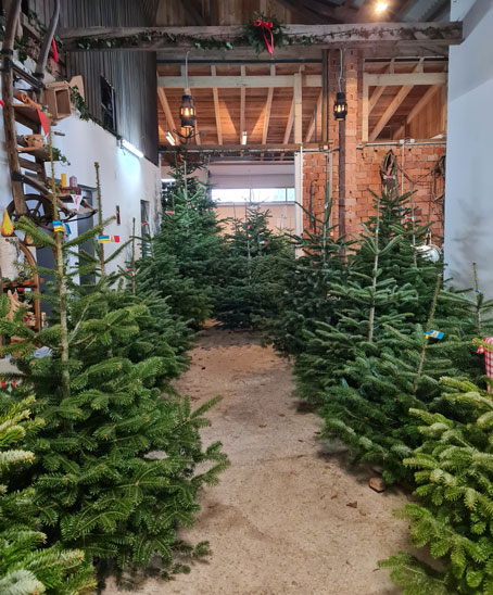 Für die Auswahl des Christbaumes steht ein trockener, wettergeschützer Ausstellungsraum zur Verfügung.